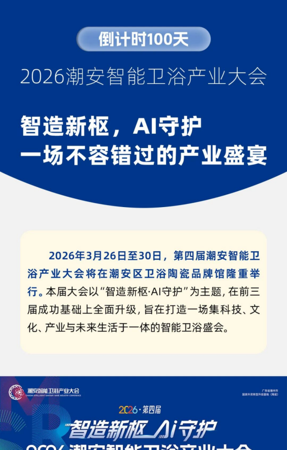 倒计时100天 | 2026第四届潮安智能卫浴产业大会:智造新枢,AI守护,一场不容错过的产业盛宴 - 潮州市潮安区古巷陶瓷协会