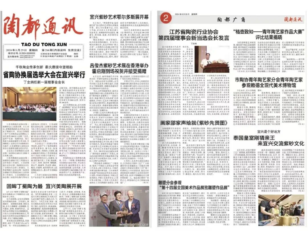 宜兴市陶瓷行业协会在信息传播和文化交流方面发挥着重要作用,拥有多种媒介平台。协会出版有《江苏陶艺》、《宜兴紫砂》季刊和《陶都通讯》月报,这些刊物为会员和公众提供了丰富的陶瓷行业资讯和学术研究。除此之外,协会还紧跟数字化时代的步伐,运营着陶协网和陶协抖音号,通过这些网络平台适时发布宜兴陶瓷的各类信息,包括行业动态、艺术展览、文化活动等,进一步扩大了宜兴陶瓷文化的影响力和覆盖范围。