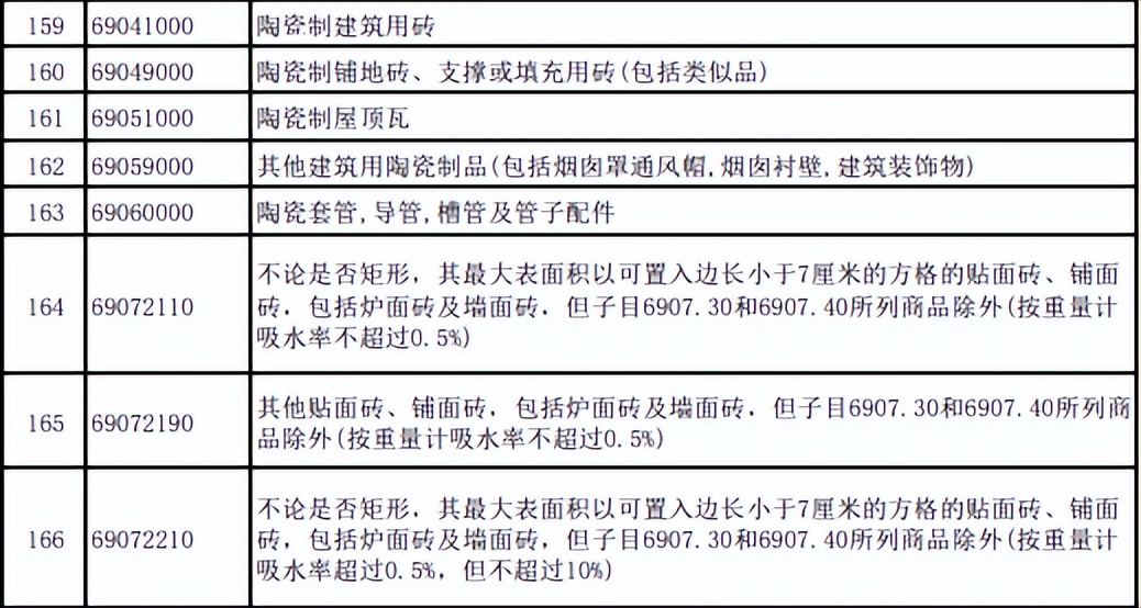 值得注意的是,陶瓷砖、陶瓷瓦等陶瓷制品亦在此次发布的产品名单之列。
