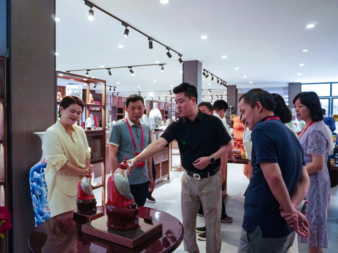 系列产品。作品精准还原传统佛像神韵,工艺精湛,市场反响热烈。占剑副主任仔细观摩后,高度赞赏企业将传统技艺与现代设计相结合的创新实践,充分肯定了企业在传承和弘扬陶瓷文化方面所做的努力。