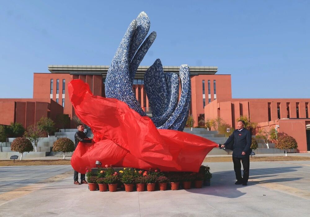 日,在江西陶瓷工艺美术职业技术学院求是广场上,随着红色绸幕缓缓落下,由辰天陶瓷制作、学院教师何超与苏曼宁设计的“青晖”陶瓷雕塑正式亮相,这座高耸的雕塑将成为校园文化的风尚新地标。