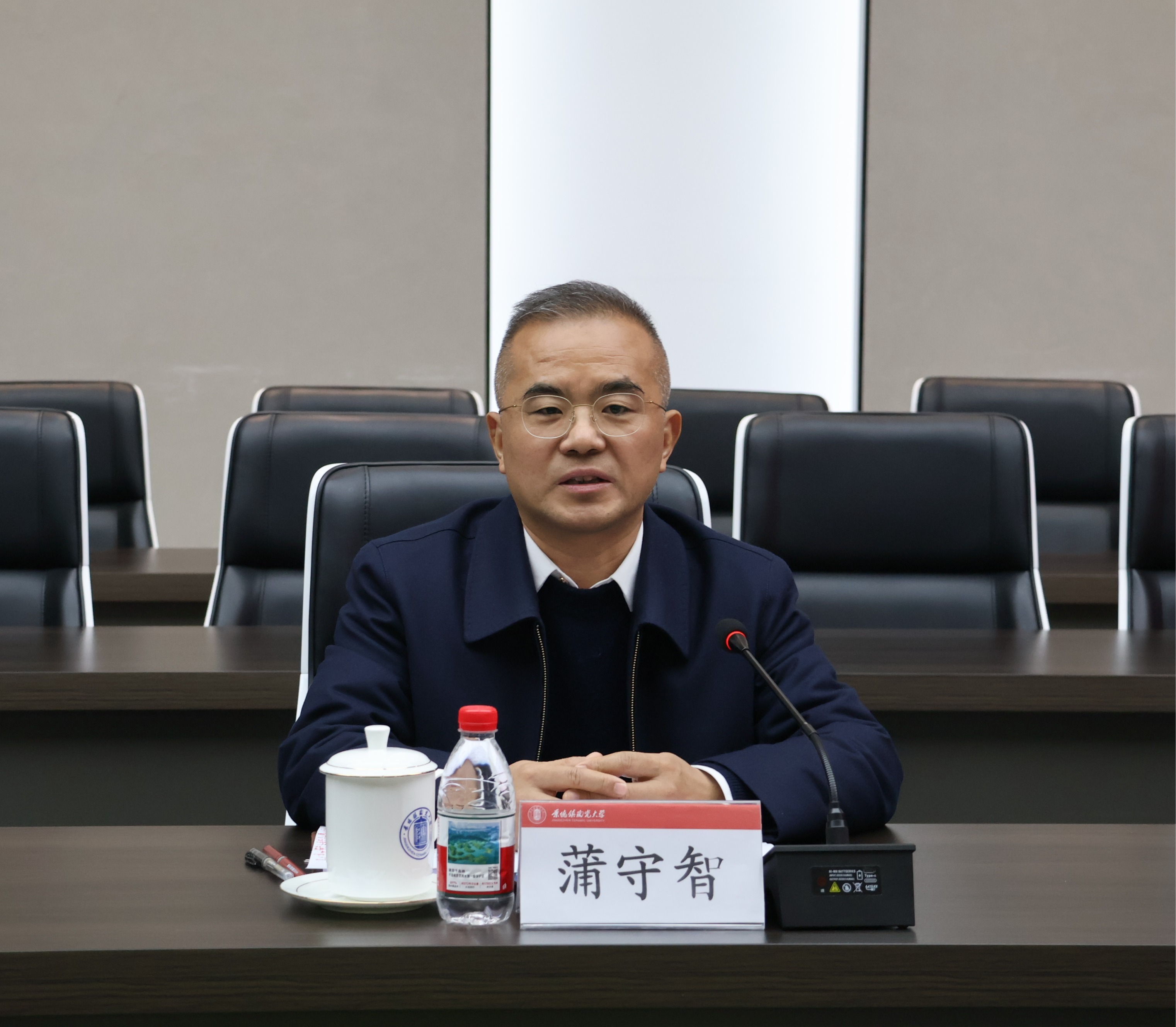 签约仪式前,蒲守智与李思林进行交流,李思林一行还参观了我校博物馆。