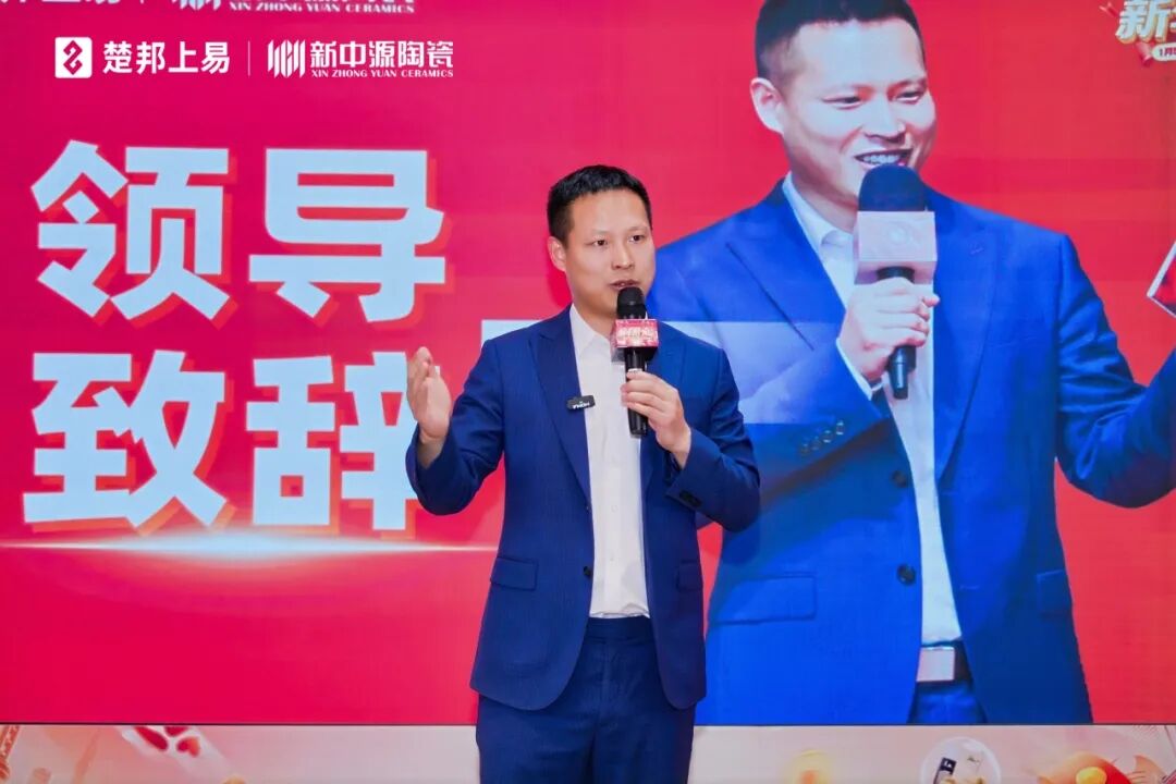 随后,广东新中源建筑材料有限公司总经理 王鹏在致辞中表示,新中源陶瓷四十多年如一日秉持长期主义,坚守品质根基,以设计驱动创新。此次联袂楚邦上易,将共同推动家装服务全面升级,用专业与品质为更多家庭构筑美好生活空间。