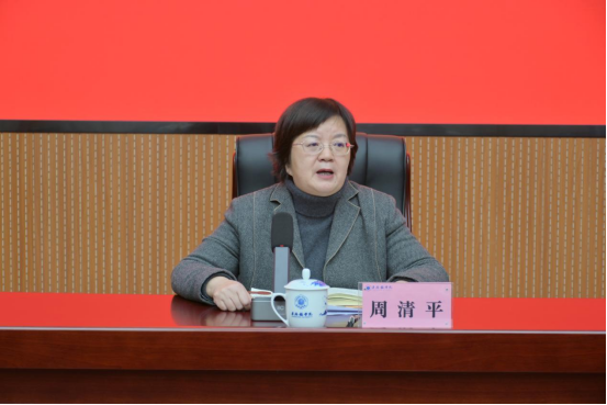 周清平在讲话中充分肯定本学期学生工作成果,高度认可学工队伍的付出。她指出,2026年是“十五五”规划开局之年、教育强国建设三年行动计划承上启下的关键之年,站在这一重要历史节点,必须全面贯彻落实党的二十届四中全会精神,以高质量育人工作主动服务国家战略大局,这既是学工队伍肩负的重大政治责任与时代使命,也是学校实现高质量发展的必然要求。围绕下一步工作,她围绕三个“持”,即“坚持、支持和可持续”向全体学工人提出三大要求:要紧扣育人主线,做实暖心工程。始终围绕立德树人根本任务,强化思想政治引领,细化人文关怀举措,提升育人工作的温度与实效;要狠抓安全底线,守护平安校园。牢固树立底线思维,持续深化安全隐患排查与风险防控,切实维护校园稳定与学生安全;要提升育人本领,赋能立德树人。不断加强理论学习与业务培训,创新工作方法,增强育人能力,助力学生全面成长成才。
