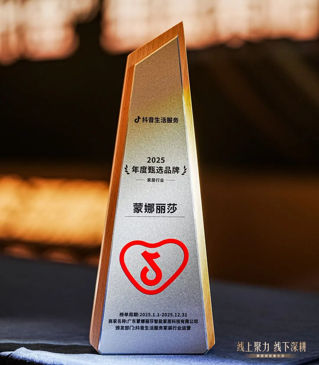 蒙娜丽莎瓷砖应邀参会,荣获由抖音官方颁发的 2025年度家居行业「品牌价值典范奖」&「年度臻选品牌」双项荣誉。
