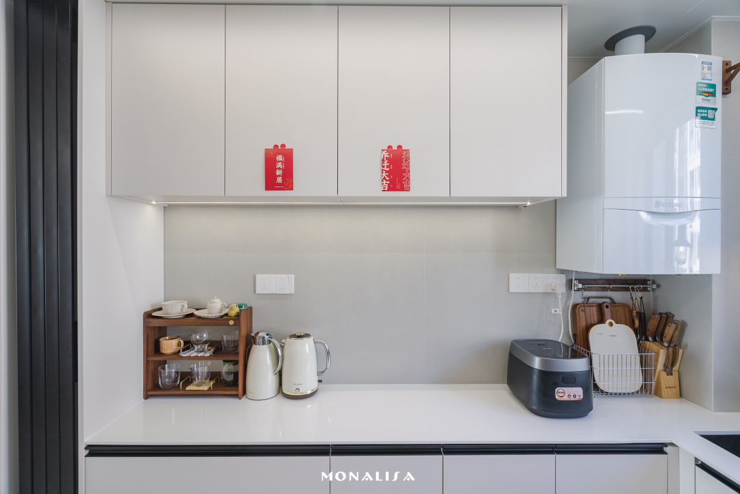 简洁整齐的设计,搭配耐污、易洁的墙地瓷砖性能,让烹饪也成为了治愈的时刻。