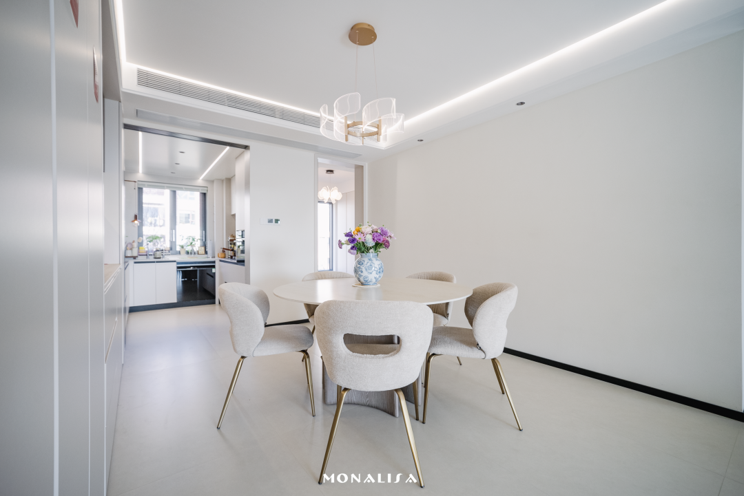 餐厨区与客厅一体通铺维托沙系列大砖,幸福随着视觉悄悄蔓延。