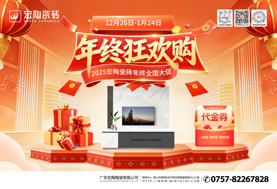 在建材家居这个充分竞争的赛道,“一线品牌”的桂冠从不轻易授予。它需要经年累月的品质坚守,需要引领潮流的产品创新,更需要在瞬息万变的市场中,展现出前瞻布局、全国联动、高效执行的体系化作战能力。纵观宏陶瓷砖一年的营销脉络,从从“315开门红”抢开局,到“五一焕新家”抓旺季,再经“国庆大促”冲高峰,至“年终狂欢”完美收官,通过一张覆盖全年、线上线下深度融合的营销网络,持续强化其作为瓷砖一线品牌的领导地位,并以实际成果验证了其战略节奏与终端掌控力。
