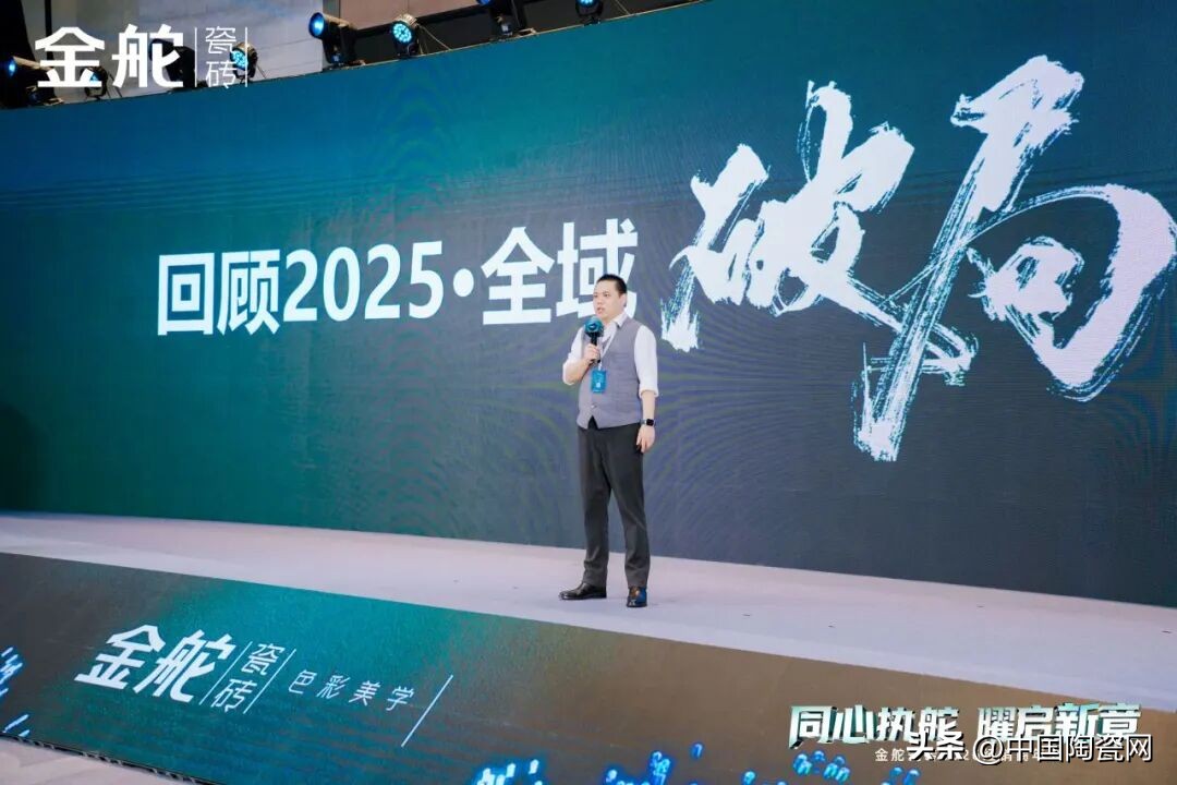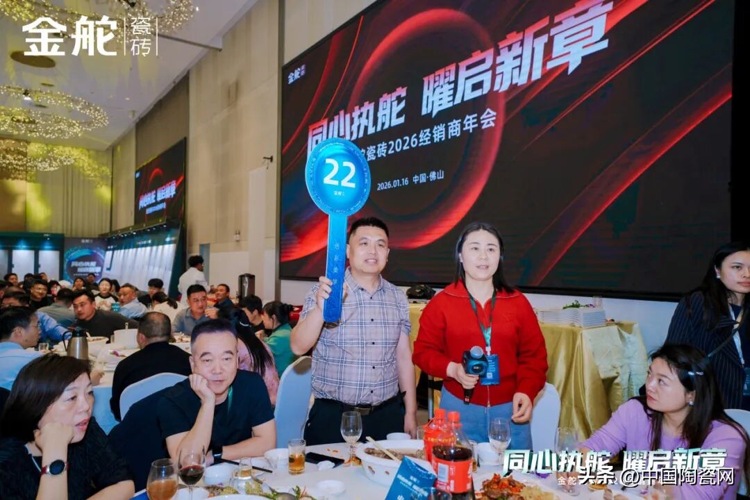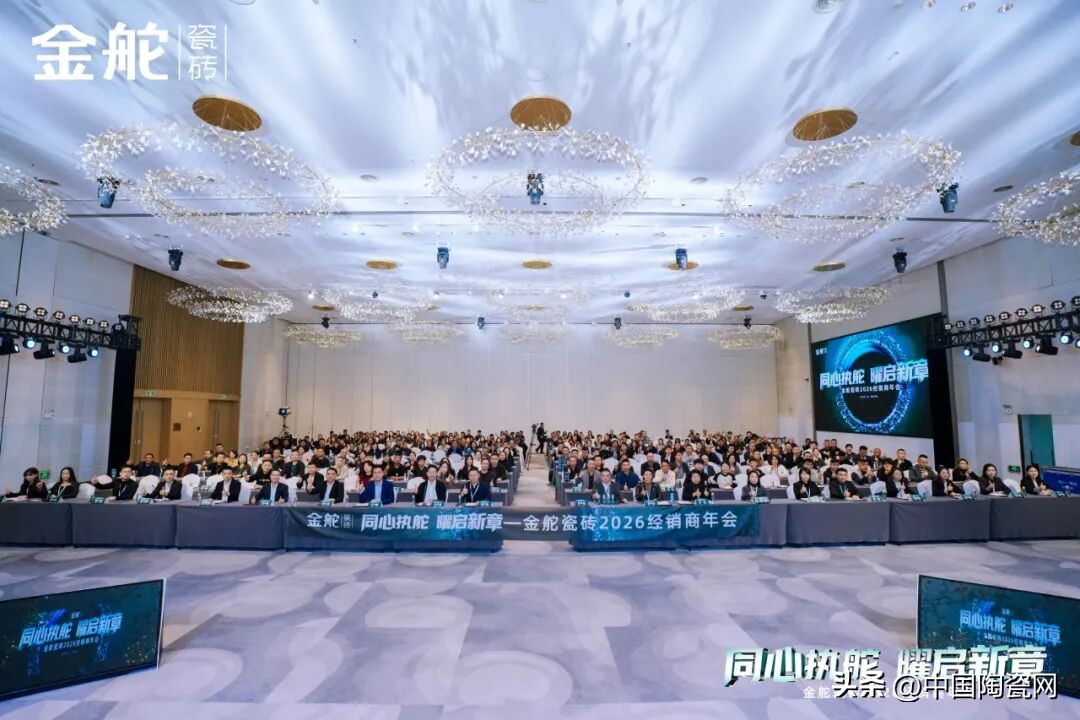 风起之时,我们曾并肩破局;潮涌之际,我们当同心执舵。2025年,镜界之下,全域突破的足迹历历在目;2026年,幻影之上,向美绽放的蓝图执笔共绘。当行业变革浪潮澎湃而至,当消费复苏曙光逐渐清晰,唯有携手同心,方能执稳航舵,穿越周期。1月16日,以“同心执舵·曜启新章”为主题的金舵瓷砖2026经销商年会在佛山圆满举行。金舵瓷砖营销管理团队与来自全国各地的经销商伙伴齐聚一堂,共同回顾破局而上的2025年,共谋2026年高质量发展的崭新路径,携手开启品牌价值跃升的新篇章。