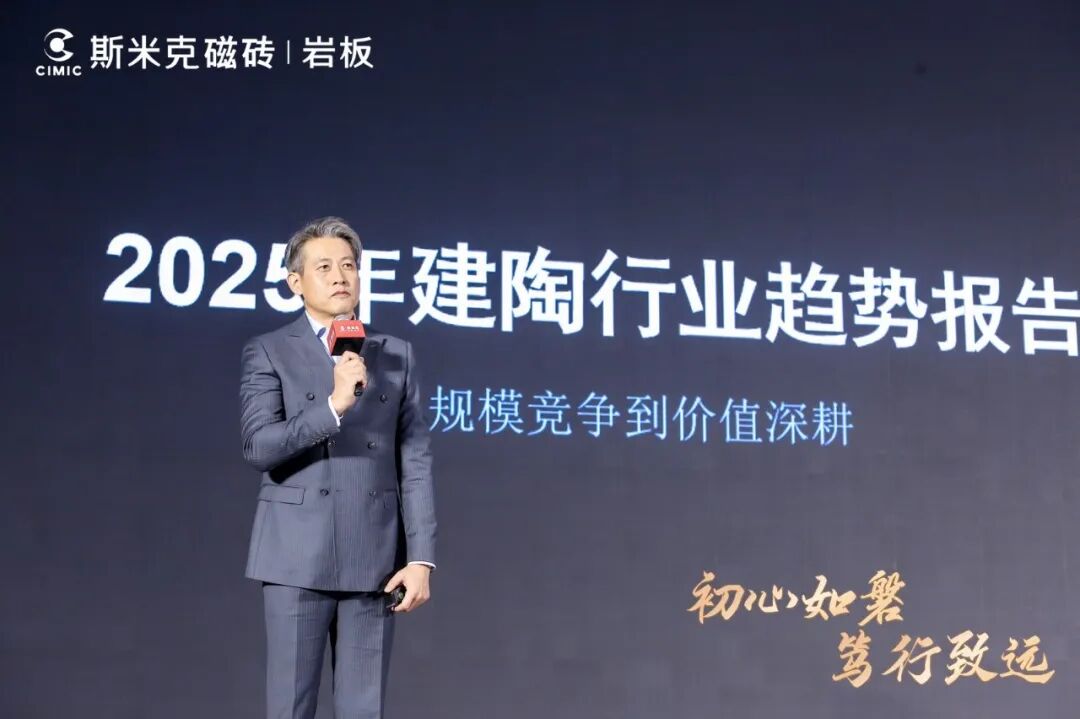 大会特邀中国建筑卫生陶瓷协会副会长宫卫先生,与会分享了2025年建陶行业的发展趋势,并围绕行业发展转型方向,概括分析了当前建陶行业从规模竞争向价值深耕转变的整体态势,解读了行业变革、市场需求及渠道发展的核心趋势,同时肯定了斯米克在行业质量测评中的优异表现,结合行业发展规律,为经销商伙伴们重构角色、提升竞争力、实现可持续发展提供了宝贵的思路与建议,精彩的分享赢得了现场阵阵掌声。