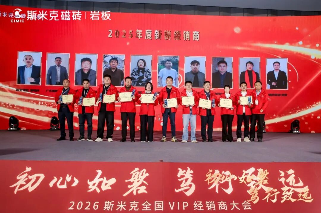 2026斯米克全国VIP经销商大会在热烈祥和、满载期许的氛围中圆满落下帷幕。本次大会的成功举办,不仅进一步深化了斯米克与全国经销商伙伴之间的信任与情谊,更畅通了沟通渠道、凝聚了发展共识,为双方后续深化合作、共赢发展筑牢了坚实根基。相信在斯米克品牌的引领下,全体经销商伙伴同心聚力、携手奋进,必将推动斯米克在新的一年续写华章、再创行业新辉煌!
