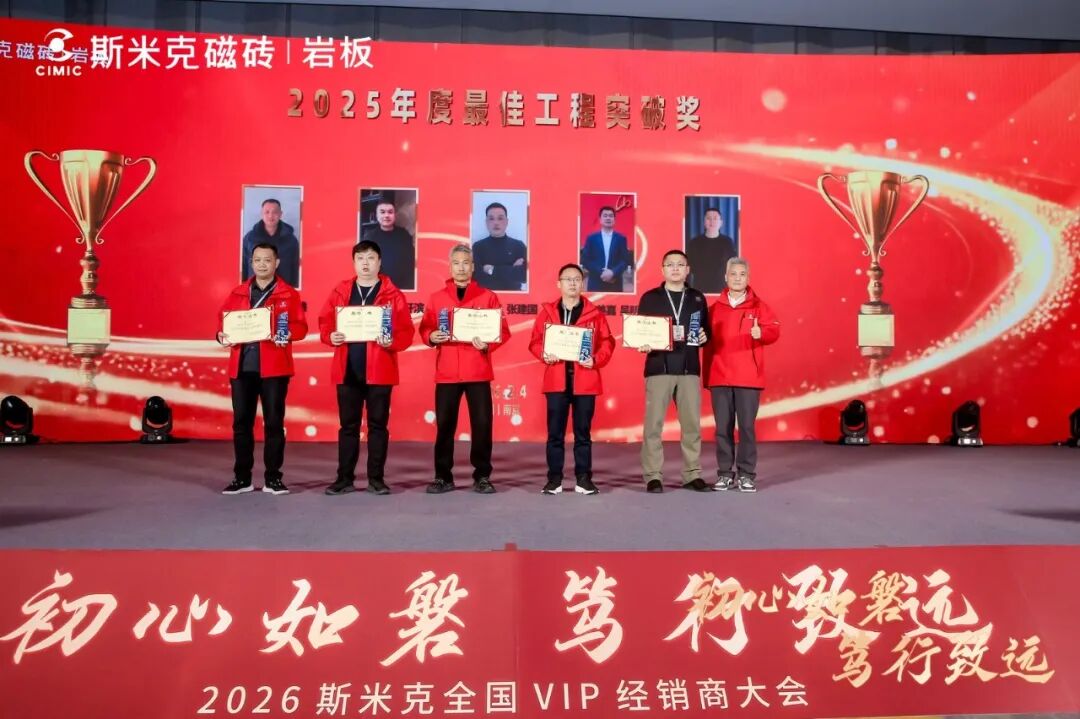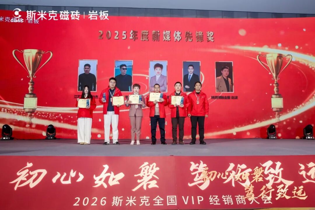 大会颁奖盛典为表彰2025年表现突出、深耕市场的经销商伙伴,对在工程、零售、产品、营销等领域表现优异、贡献突出的经销商进行了隆重表彰。斯米克各部门领导亲临现场,为获奖经销商逐一颁发奖杯与证书,肯定其过往付出的同时,鼓励大家不忘初心、再接再厉,在新一年续写佳绩。获奖经销商们纷纷表态,将倍加珍惜这份荣誉,继续与斯米克同心同向、携手并肩,共同奔赴更加辉煌的未来。