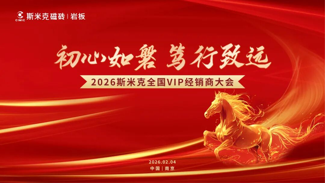 恰逢立春,万物启新,2026年2月4日,以“初心如磐 笃行致远”为主题的2026斯米克全国VIP经销商大会在南京凯宾斯基大酒店盛大召开。来自全国各地的经销商伙伴齐聚金陵,特邀上海斯米克集团董事长李慈雄先生、中国建筑卫生陶瓷协会副会长宫卫先生、上海悦心健康集团副董事长余璟先生、上海斯米克建筑陶瓷董事长陈前先生、上海悦心健康集团财务长赵一非先生等嘉宾参加,共同回顾过去一年的成绩,展望未来发展趋势,共谋合作共赢新篇章。共探行业发展新趋势,共商品牌增长新路径,携手开启合作共赢的新征程。