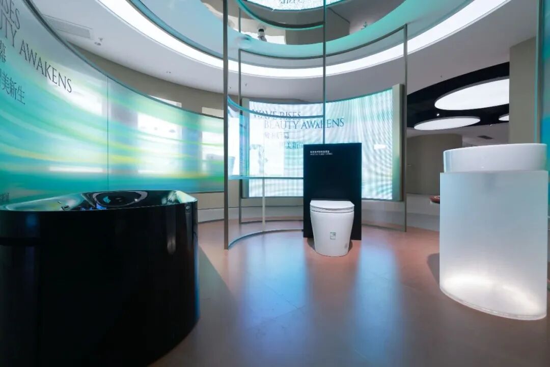该展厅融合展示了东鹏整装卫浴上海1号店,打造出一处融合智能科技与生活美学的沉浸式体验空间;