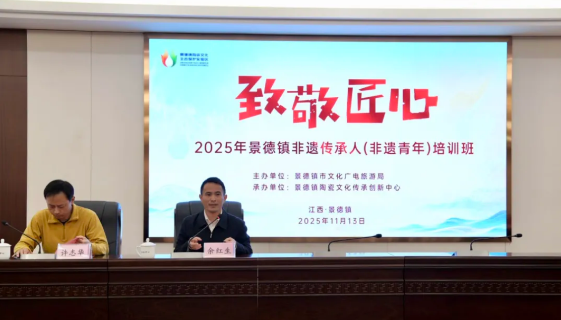 为有效推进景德镇陶瓷文化生态保护实验区建设,提高传统工艺项目专业人员对实验区及非遗传承与保护的理念、工艺方法和技能的认识与运用能力,11月13日至11月14日,由景德镇市文旅局主办、景德镇陶瓷文化传承创新中心承办的“致敬匠心”2025年景德镇非遗传承人(非遗青年)培训班正式开班。190名市级非遗代表性传承人、景德镇各县(市、区)及高校非遗青年人才库人员代表60人参加培训,6名非遗传承人、专家和学者为学员们带来一场场精彩又富有实践价值的“知识盛宴”,引导非遗传承人关注实验区建设,传薪火、守匠心、续写陶瓷文化新的华章。
