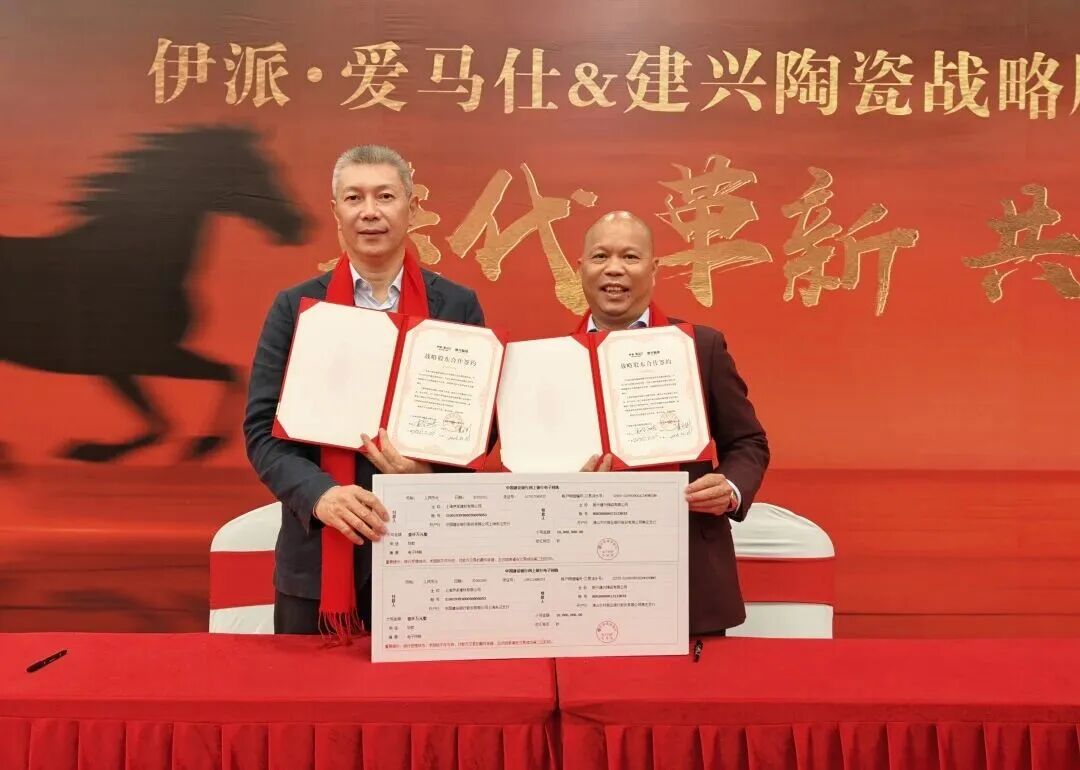 伊派·爱马仕中国区总裁夏可彬在活动上提到,当前建陶行业正迎来迭代重构的关键拐点,高端化、智造化、标准化是破局的核心方向。而建兴陶瓷董事总经理胡序鹏也坦言,这次合作并非单纯的资本注入,而是全方位的资源协同与技术赋能。
