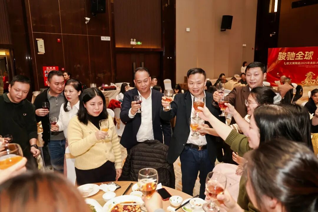 随着夜幕降临,晚宴以粤式佳肴与文艺表演、幸运抽奖交织,现场笑声不断、掌声雷动。欧文莱职工舞蹈队演绎的舞蹈《万疆》,更是展现了欧文莱一线员工的多才多艺与团队协作能力。