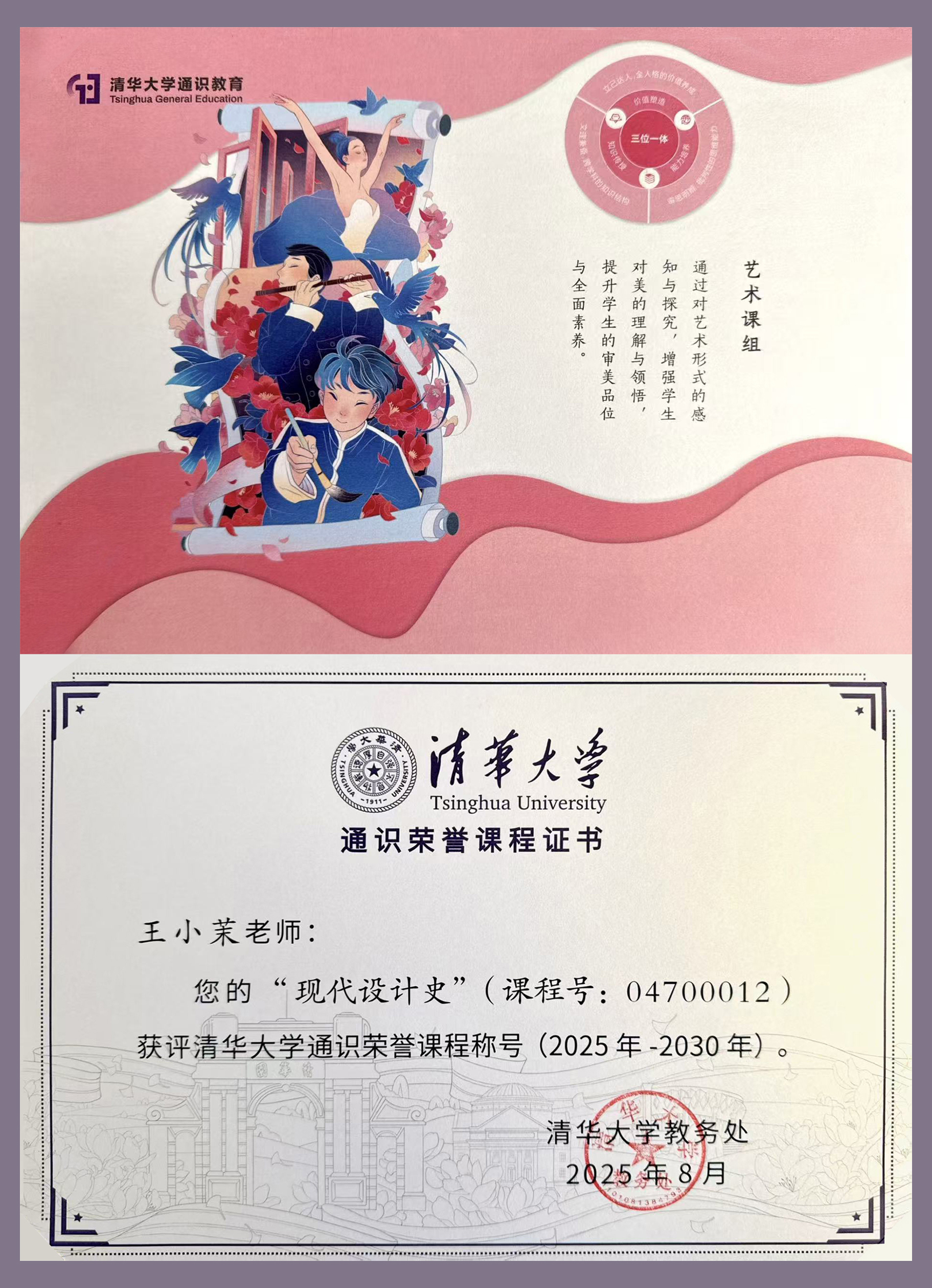 三月春风,致敬芳华。在 “三八” 国际妇女节,让我们走近清华美院王小茉老师。她主讲的《现代设计史》课程,荣获了“清华大学通识荣誉课程”称号。在清华园里,还有许多这样的女性教育工作者,以温柔而坚定的力量,启迪思想、温润心灵。她们用专业与热爱,拓宽通识教育的边界,带领学生看见更广阔的世界,读懂生活与艺术的深意。