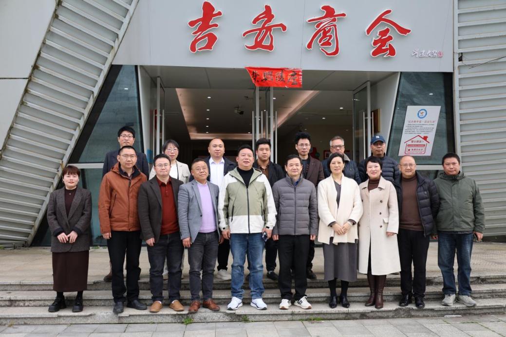 随后,熊震宇一行前往景德镇市吉安商会调研交流。商会会长欧阳小兵陪同参观并介绍商会发展概况。双方围绕人才培养、实习就业、学科建设等深入探讨。熊震宇表示,期待与商会共建实践教学基地,探索订单式人才培养模式。商会负责人表示将积极整合资源,为学校提供实践平台与就业岗位。