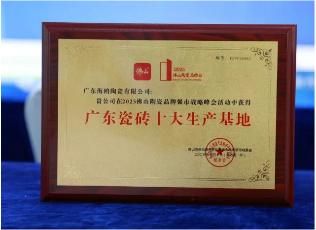 ”)凭借深厚的历史底蕴、卓越的生产实力与创新成果,荣膺“广东瓷砖十大生产基地”称号。这一荣誉不仅是对企业数十年深耕的肯定,更彰显了佛山陶瓷产业在品牌化、高端化转型中的标杆作用。