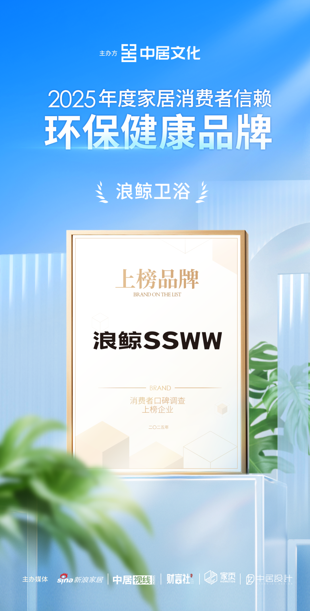 10月17日,“2025第四届家居消费者口碑榜”正式揭晓。本届口碑榜以“家居行业高质量发展,扎实推进优质品牌建设”为宗旨,聚焦六大核心维度,包括“安心交付”、“环保健康”、“销量领先”、“安全耐用”、“质量标杆”及“设计引领”,全面覆盖当前家居消费的核心诉求。浪鲸卫浴凭借优越的产品质量、良好的消费者口碑,获得消费者和行业的高度认可,从上百家家居品牌脱颖而出,荣膺「2025年度家居消费者信赖环保健康品牌」称号。