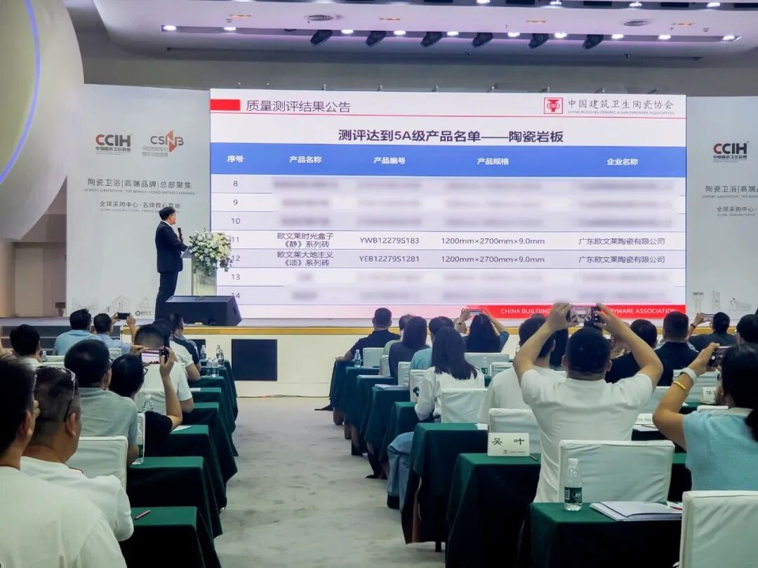 10月17日,“2025建筑陶瓷新质生产力发展大会”在佛山中国陶瓷产业总部基地隆重召开。会议主要内容为GB/T 45817-2025《消费品质量分级 陶瓷砖》标准解读、首批质量测评结果公布及数据分析。会上,质量测评结果公告,欧文莱产品各项性能指标达到标准中最高要求,通过首批“新国标”AAAAA级检测,近三代符号产品均“上榜”,彰显品牌高质量发展新高度。