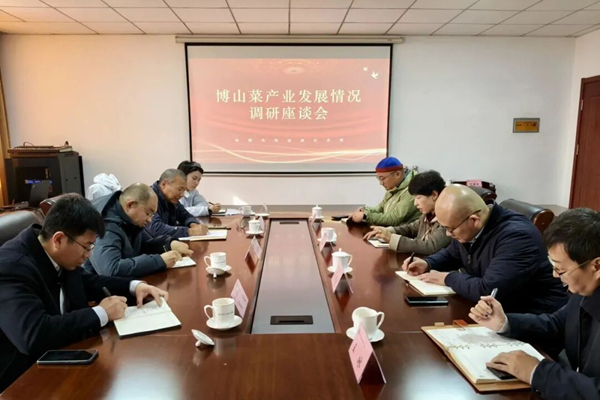 11月17日,淄博市政府研究室食品产业高质量发展专题调研组,赴博山区围绕博山菜产业发展情况进行调研,调研组由市政府研究室三级调研员胡寒冰带队、市政府研究室有关科室负责人、市政府发展研究中心、市传统产业发展中心有关人员参加调研;博山餐饮产业发展专班总负责人(淄博市焦裕禄纪念馆馆长、淄博市焦裕禄精神教学基地总负责人)夏艳华主持调研座谈会,博山餐饮专班常务副主任王冰、博山健康食品产业园负责人冀曙光、博山品牌连锁协会会长王振等参加座谈。