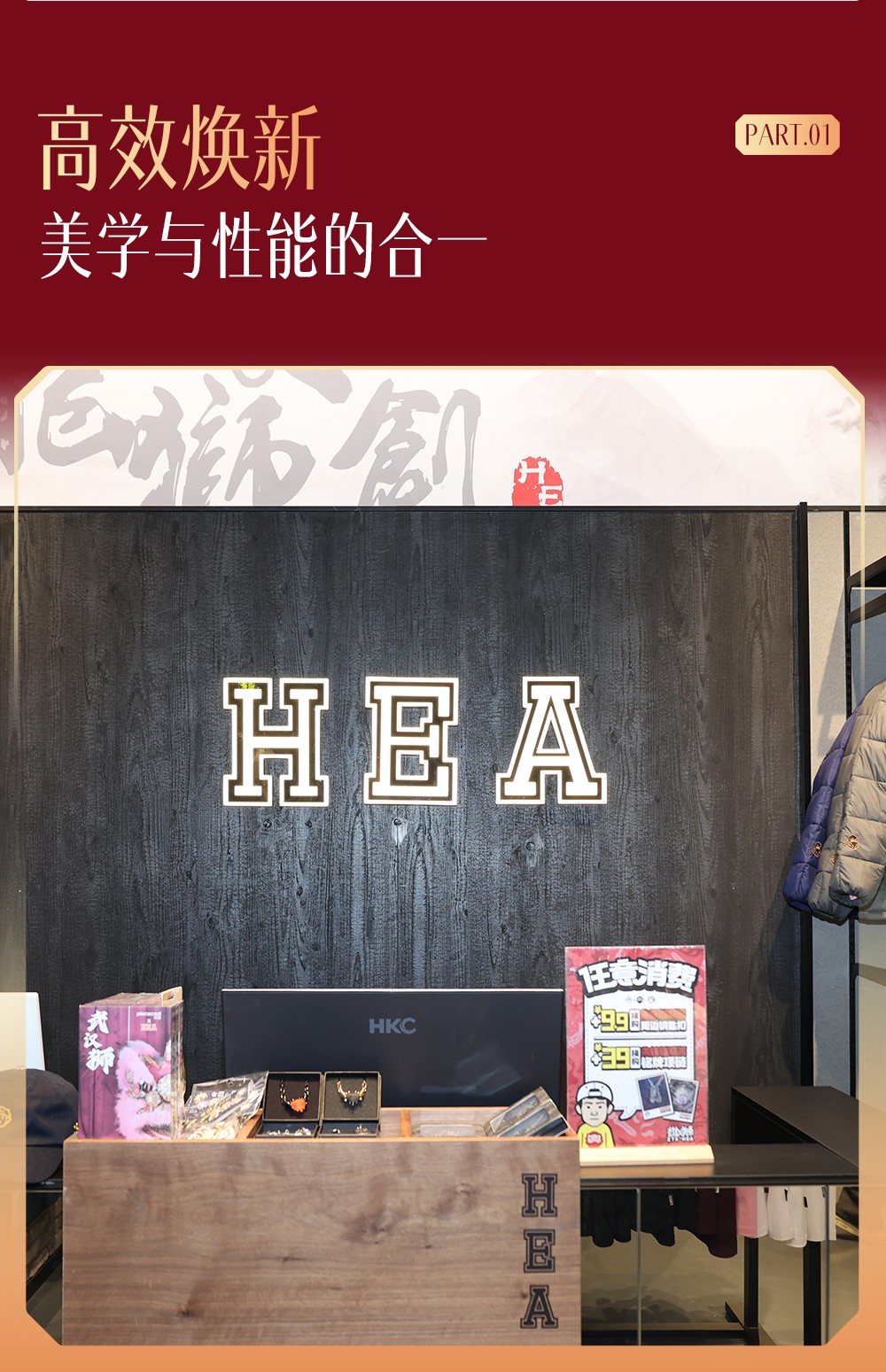 HEA门店是冠珠新材在国潮商业空间的一个标杆。案例背后,是冠珠瓷砖空间场景升级应用的深耕积累。