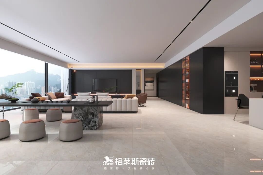 选择瓷砖时,不应盲目追随“哑光高级”等潮流,而应回归实际需求,兼顾美学与实用。采光不足的户型可选用亮光砖,配合合理灯光设计,能有效提升空间亮度与通透感。格莱斯奢理石系列采用高光釉面,增强光线反射,尤其适合改善昏暗环境。