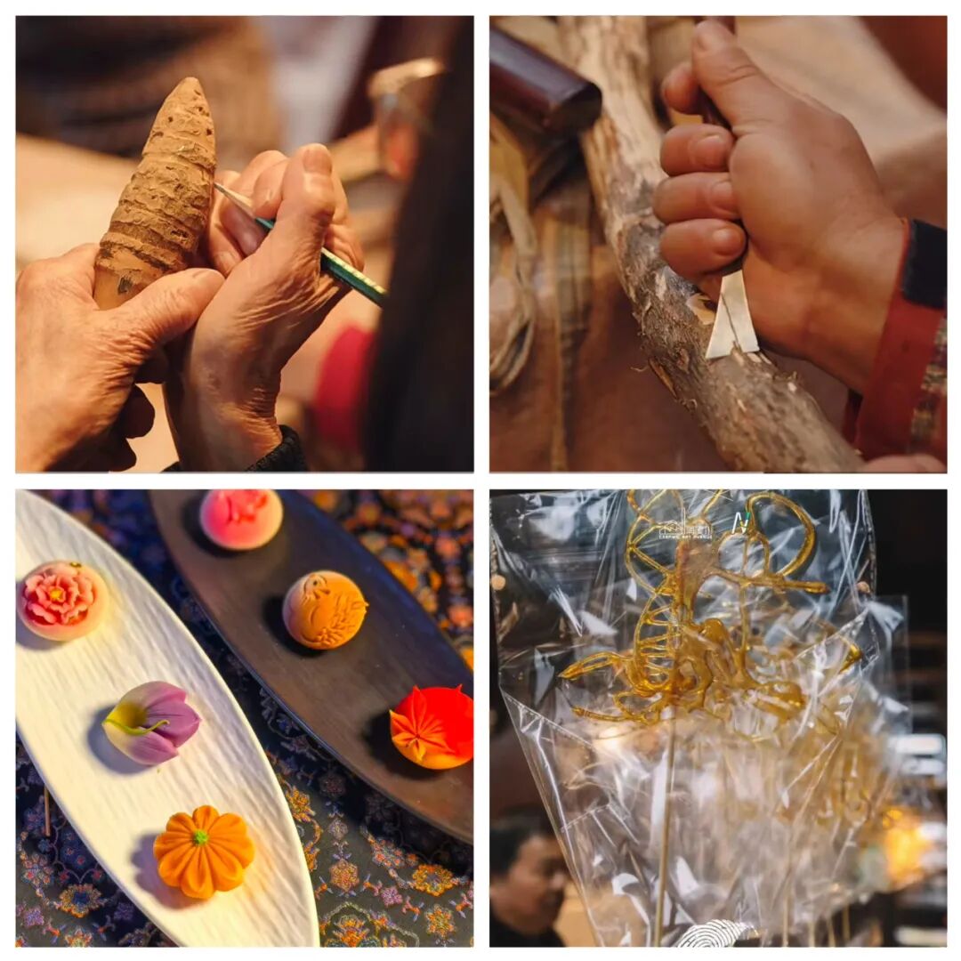 活动现场,景德镇陶瓷文化传承创新中心组织多项特色非遗项目惊艳亮相,成为全场焦点:应子茶果子以花入点、以茶承礼,将花朝意境与传统茶食美学完美融合;景德镇传统青花瓷制作技艺现场展示勾线、分水等核心工序,再现千年青花的独特魅力;景德镇雕塑瓷手工制作技艺以泥塑形、以刀传神,尽显瓷雕艺术的灵动神韵;鲇鱼山镇根雕技艺依木赋形,诠释自然与匠心的碰撞;糖画制作技艺以勺为笔、以糖为墨,勾勒出鲜活的民俗纹样;素问御药坚守古法药香技艺,让传统养生文化与手工匠心相得益彰。六大非遗技艺同台展演,全方位展现瓷都非遗的丰富底蕴与活态传承活力。