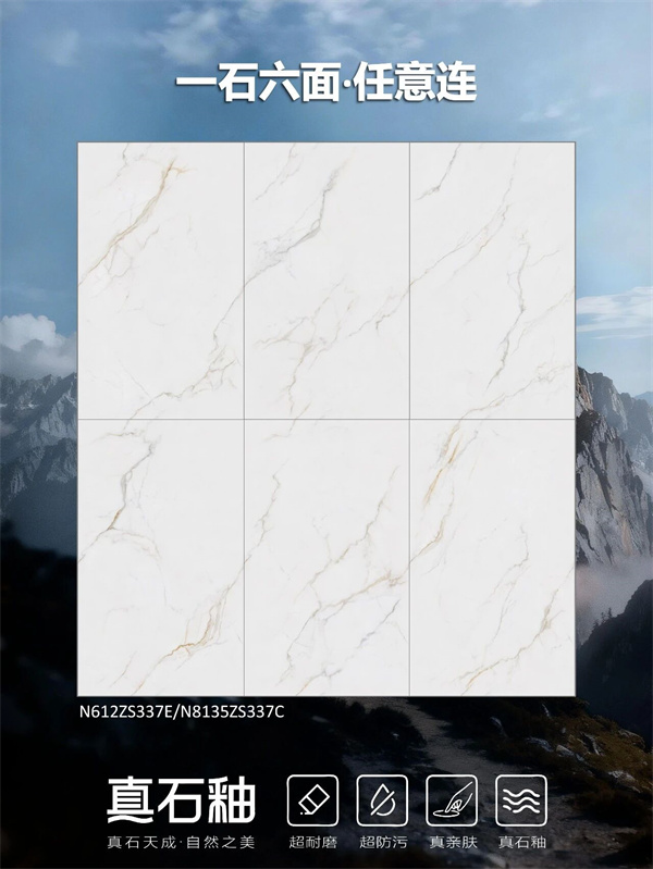 一石六面、任意连纹的设计,打破铺贴局限,子母配套更能适配多元场景,让每一面墙、每一片地都浑然天成,尽显自然之美。