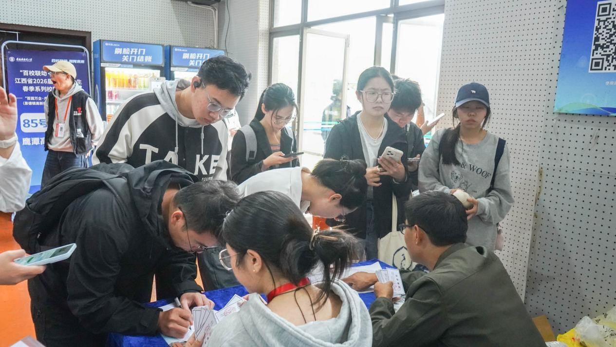 本网讯(文/赵栩瑭 张蠡丹 图/安家禾 邹艺涵 卜勤思宇 林润成)为深入贯彻落实党中央、国务院关于高校毕业生就业工作的决策部署,4月11日,由江西省教育厅主办,江西省教育评估监测研究院、景德镇陶瓷大学承办,江西陶瓷工艺美术学院联办的江西省2026届“百园万企·产才融合”工业园区专场(景德镇陶瓷大学)春季校园招聘会在我校湘湖校区室内体育馆一楼举行。校党委常委、副校长胡银娇深入现场指导工作。有关职能部门主要负责人、各学院(部、系)负责人、毕业班班主任全程参与,积极了解企业需求,现场指导学生应聘签约。