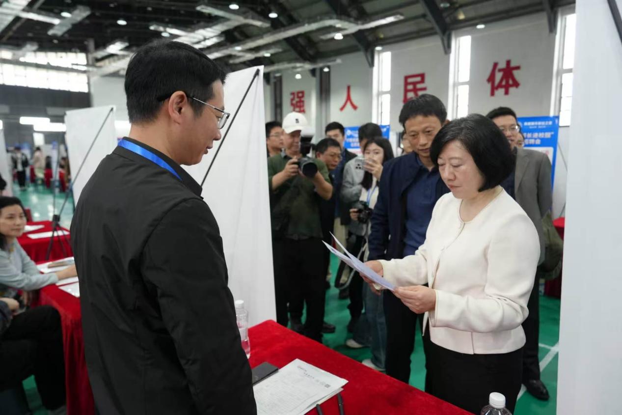活动包括驻景高校联合招聘专场、产业供需对接会和全市教育科技人才一体推进工作会,内容丰富、务实高效。林蓉一行深入招聘现场,与就业服务工作人员、企业代表及我校求职学生亲切交流,详细了解毕业生就业创业政策落实、企业岗位需求与学生就业意向,勉励广大毕业生把握机遇、扎根瓷都、建功立业。