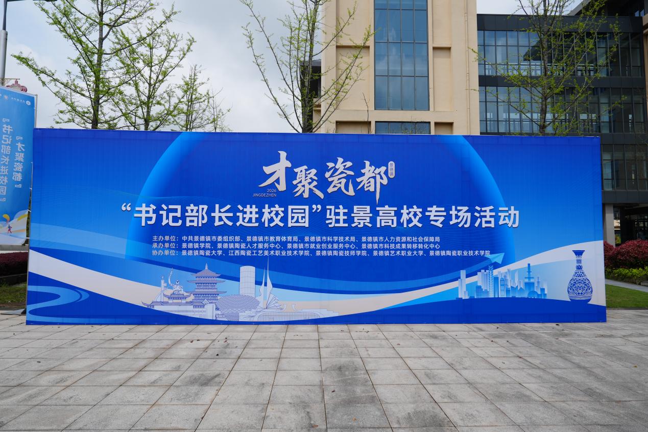 (本网讯:文|景院轩/图|翁艺馨、周瑶瑶、冯雨轩)4月10 日,“才聚瓷都 书记部长进校园”驻景高校专场活动在我校成功举办。活动由景德镇市委、市政府统筹部署,聚焦教育、科技、人才一体推进,深化政校企协同合作,为景德镇国家陶瓷文化传承创新试验区建设与“1+2+N”现代化特色产业体系建设汇聚青年人才、夯实智力支撑。市委常委、组织部部长林蓉出席活动,校党委副书记、校长熊震宇和党委委员、副校长周清平陪同参与相关活动。