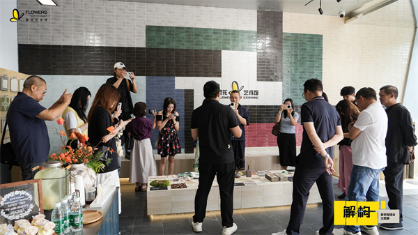 随后,「繁花艺术砖市场部总监-黎伟华」带领媒体解说展览动线,从前厅LOGO墙的艺术肌理表达,到中央灵感溯源展台的自然素材呈现,再到画廊式展区的设计逻辑拆解,系统阐释“拆解—重组—新生”的策展内核,传递品牌对材质本真、设计溯源与生活美学的极致追求。