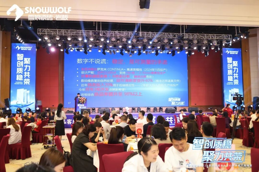 4月18日,以“智创质稳 聚力共荣”为主题,雪狼岩板2026新品品鉴会暨同心共赢财富答谢晚宴在佛山盛大举行。