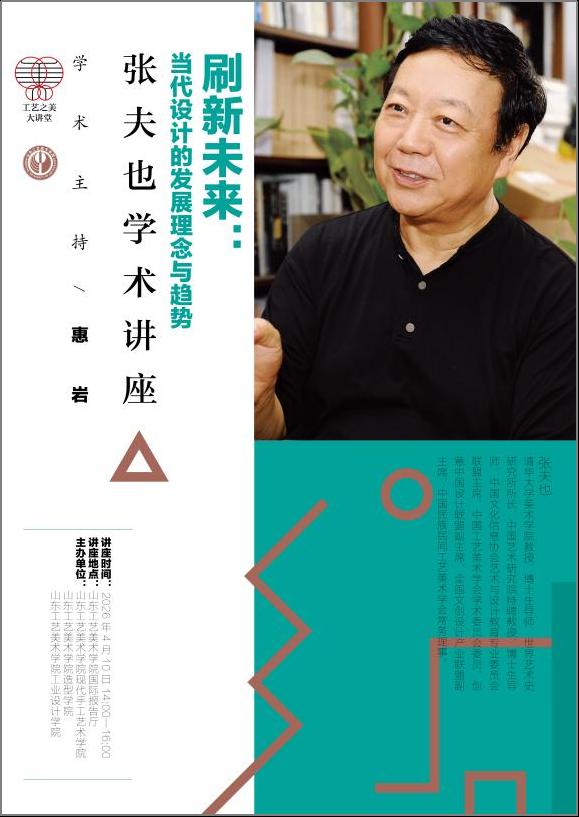 张夫也教授作题为《刷新未来:当代设计的发展理念与趋势》的学术报告。他从设计文明与时代使命出发,系统阐述当代设计面临的五大根本性转变:从机能走向智能、从生态设计走向设计生态、从创新走向适理、从以人类为本走向以生灵为本、从误读传统走向借古开今。张教授深刻剖析数智文明背景下设计伦理、设计责任与设计生态的核心要义,强调设计要坚守人文精神、服务社会民生、实现普惠共享,呼吁广大师生做工具的主人而非奴隶,在传承经典中开拓创新。他高度评价我校在全国工艺美术教育领域的独特地位与突出贡献,表示将持续支持学校学科建设与人才培养工作。
