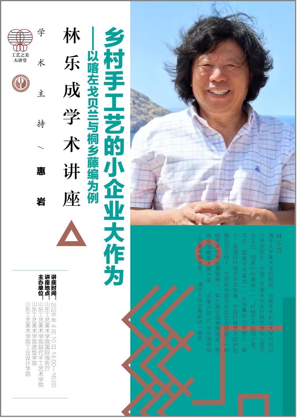 为深入推进现代手工艺术学院“数智赋能·传承创新”的学科发展理念,拓展师生学术视野,助力传统工艺与当代设计深度融合,4月10日下午,山东工艺美术学院“工艺之美大讲堂”系列专题讲座在山东工艺美术学院国际报告厅成功举办。本次讲座作为“云外家山——唐绪祥艺术作品展”重要配套学术活动,特邀清华大学美术学院林乐成教授、张夫也教授先后带来精彩学术报告。两场学术报告由现代手工艺术学院院长惠岩教授主持。