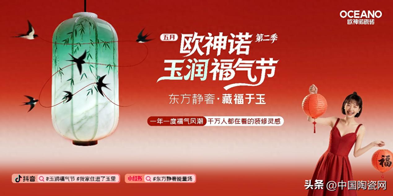 欧神诺第二季“玉润福气节”以“东方静奢·藏福于玉”为主题盛大开启,线上线下联动打造福气盛宴。活动以抖音为核心,携手达人打造创意内容,发起案例分享与直播专场,提供购砖福利。同时联合小红书构建高端家居种草阵地,通过美学分享与多元活动展现中国玉的静奢魅力。此外,品牌携手媒体开展消费趋势调研,并即将发布用户纪实短片,深度联结玉文化与家居生活。
