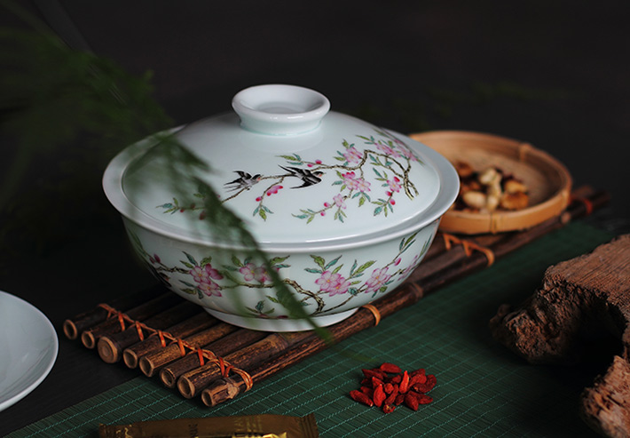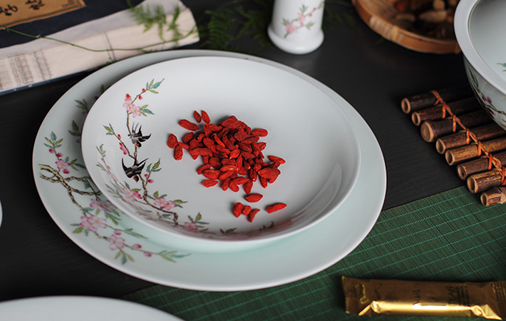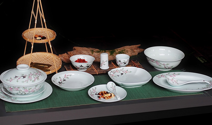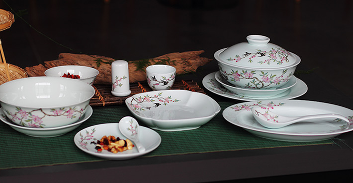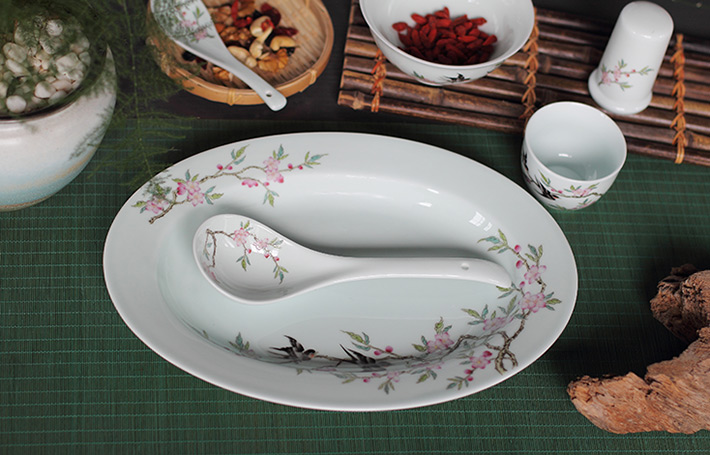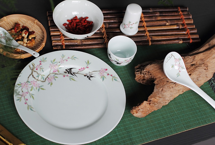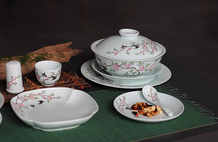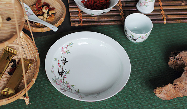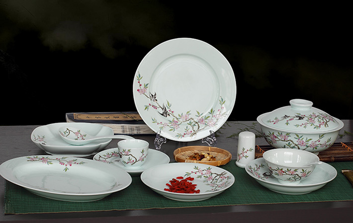 36头青釉中餐具--燕子桃花