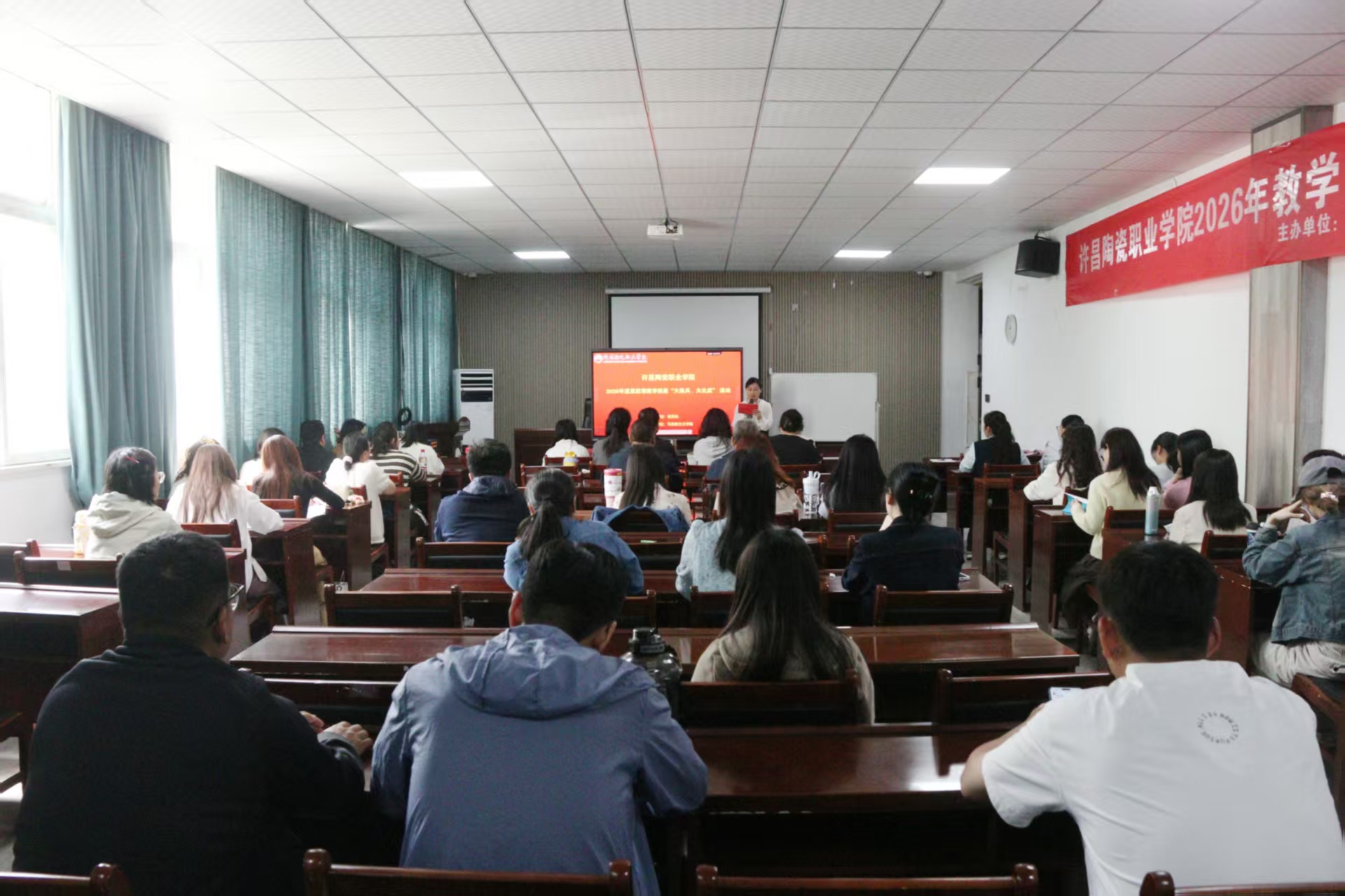为深入贯彻落实习近平总书记对学校思政课建设作出的重要指示精神,全面提升思政课教师教学技能与育人水平,4 月 17 日下午,由学校教务处主办、马克思主义学院承办的 2026 年度思政课教学技能“大练兵、大比武” 活动在综合楼 101 会议室顺利举行。学校工会主席、纪委书记郭磊出席活动,教务处、马院负责人、全体思政课教师和学生代表参加了此次活动。