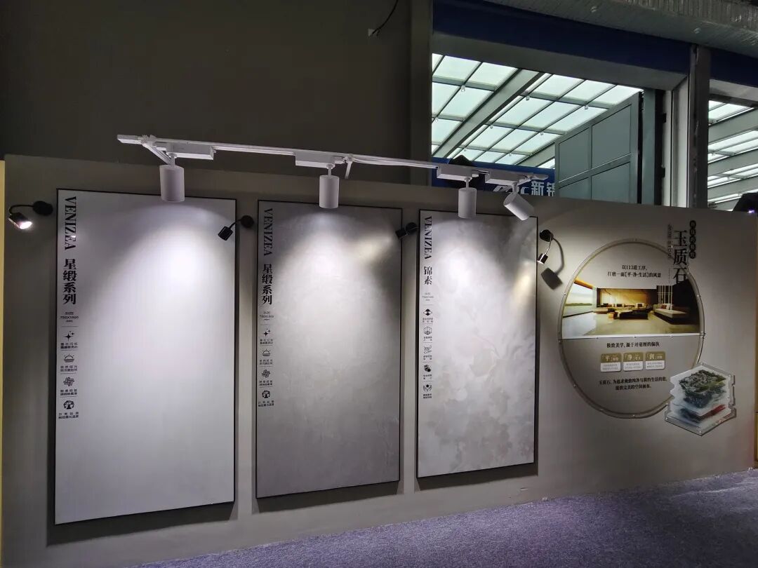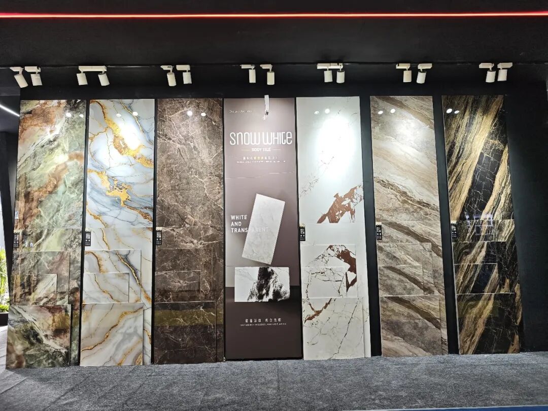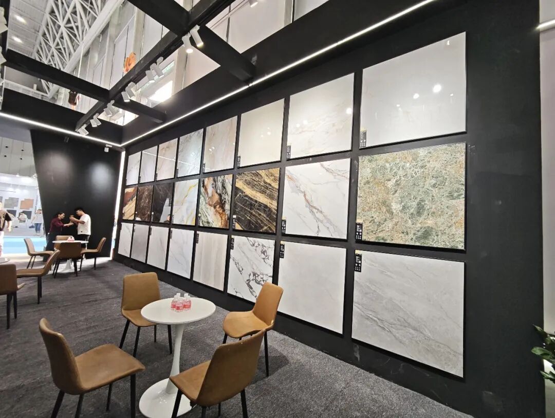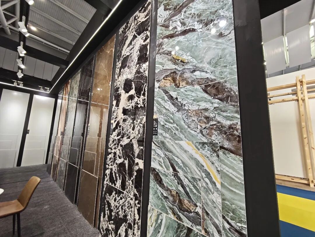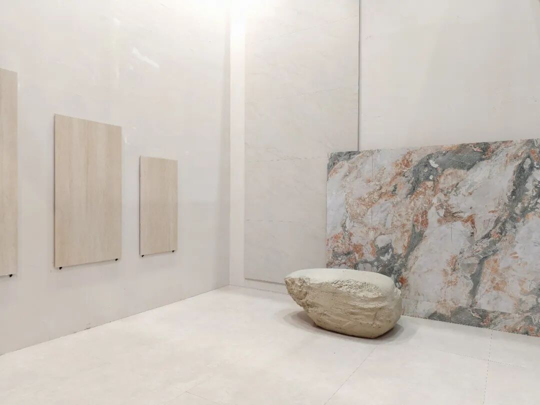 狮王瓷砖重点展示的是品牌在高端石材质感瓷砖领域的创新力作——云脉石S系列。该系列产品突破传统二维平面质感局限,通过创新工艺打造“高、中、低”三层立体层次,纹理起伏自然流畅,触感细腻温润,高度还原天然石材的原生质感,视觉与触觉体验双重升级。