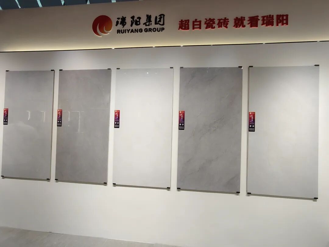 瑞阳重点推出了集团旗下品牌沁园春·雪的5A超平釉、金丝绒易洁釉系列、大地龙脉系列、3D复刻釉等产品,涵盖400×800mm至900×1800mm等主流规格。
