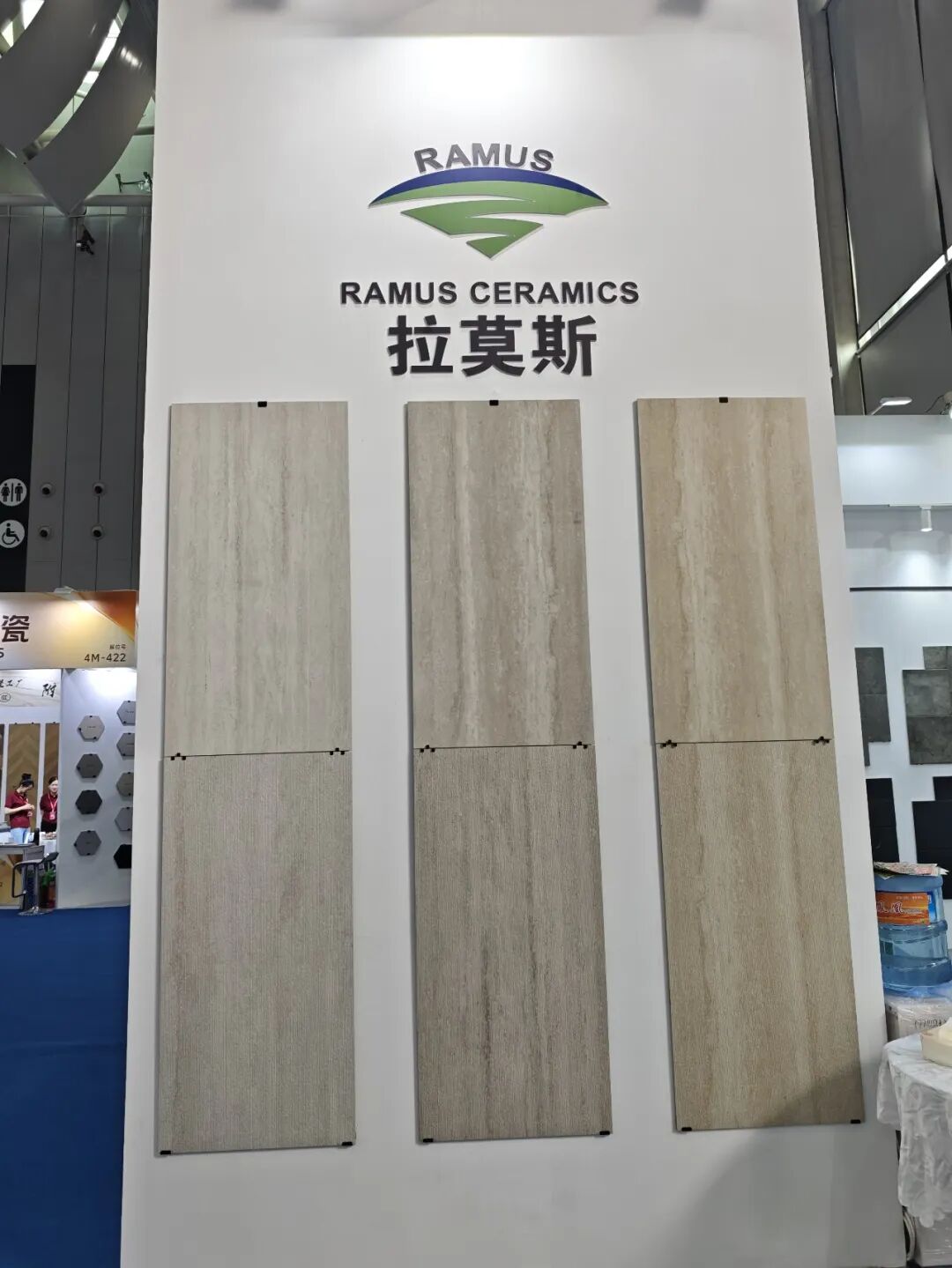 第一次参展便让人留下深刻印象的,当属旭日集团旗下的白兔瓷砖、梵仕森瓷砖和泥也瓷砖。