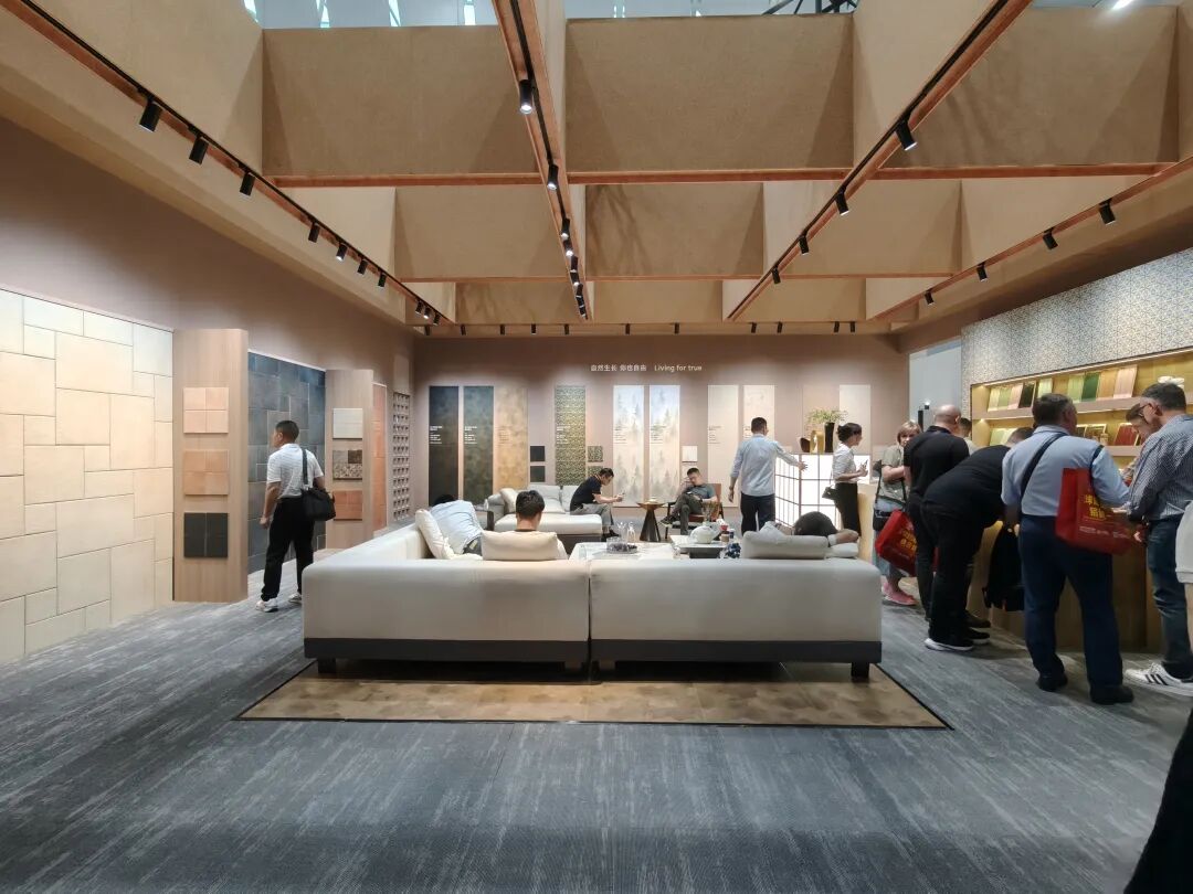 整个展馆以“自在东方”为主题,通过瓷砖、岩板、卫浴五金等品类跨界融合,呈现全场景家居空间解决方案,诠释“绿色健康·东方美学”的核心理念,为观众提供从设计到落地的灵感与参考。