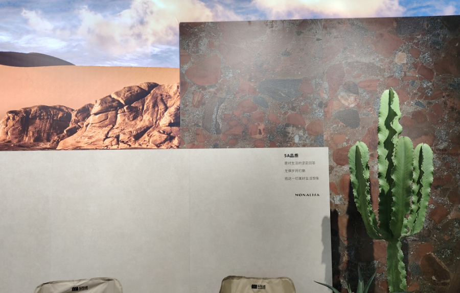 蒙娜丽莎以【零碳·艺境】为主题,打造一场可持续美学展览,呼应品牌对环保与艺术融合的追求。推出了零碳燃烧陶瓷薄板,以低碳排放、优越性能与极致质感。