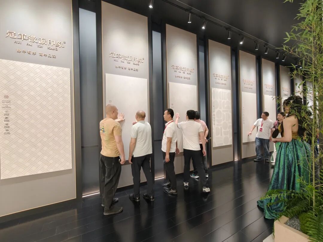 此外,冠珠展示了 “华韵”高端岩板系列、5A系美好产品、悦木系列、荔月丹垂等。“华韵”高端岩板系系列以中国节律为文化源点,旨在为空间注入深厚文化质感。还展示了冠珠省心交付系统。
