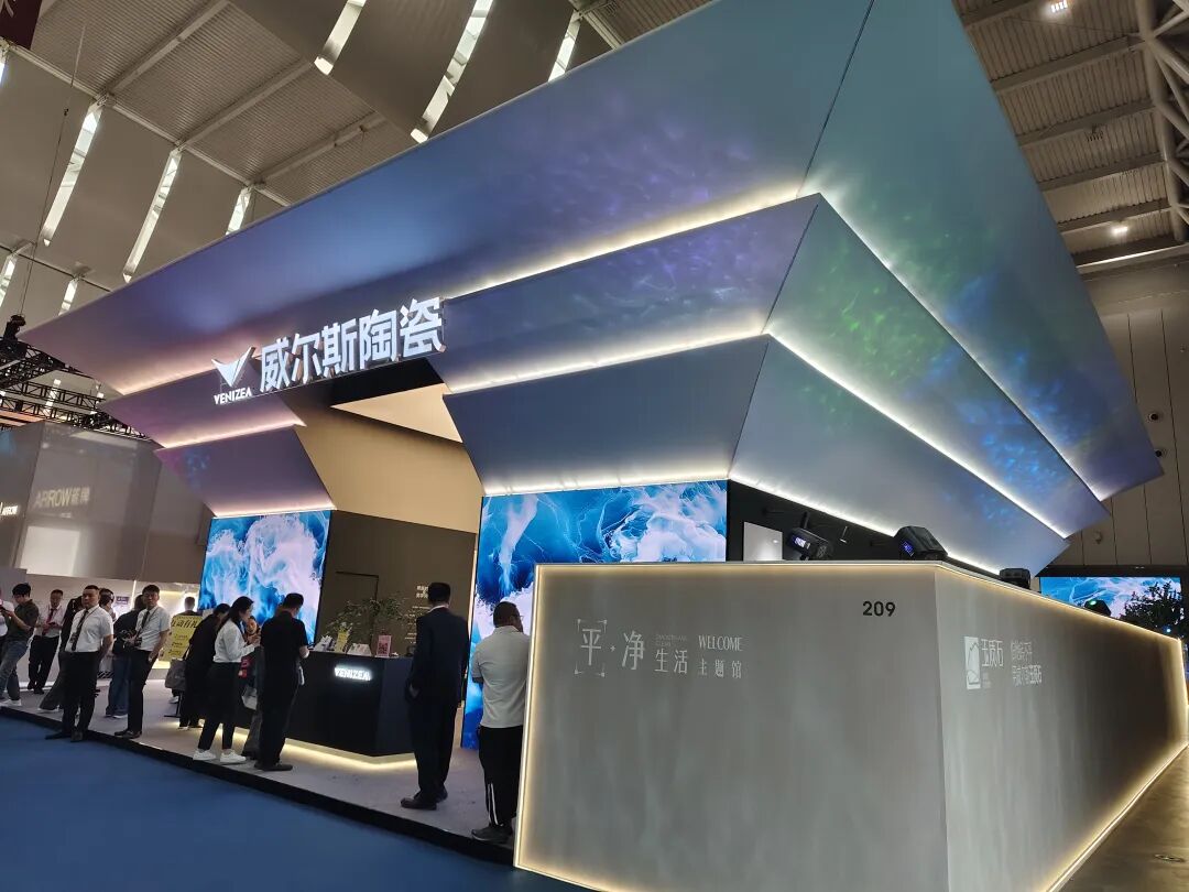 新锦成以 “交个‘新’朋友” 为主题,营造开放、创新的交流氛围。重点展出了两大战略新品系列:主打极致洁净体验的“闪净”系列和代表高品质标准的“5A柔光砖-跨界石”系列。这两大系列分别从“用户情绪价值”和“硬核品质标准”两个维度,展现了品牌对市场需求的深度洞察与工艺实力。