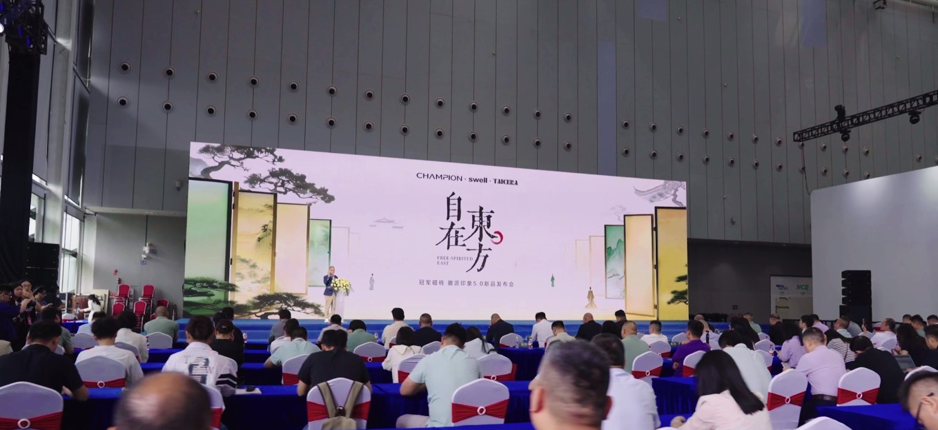 4月20日~23日,2026佛山潭洲陶瓷展圆满落幕。冠军磁砖、四维卫浴与大同奈磁砖三大品牌联合参展,以「自在东方 一日·一院·一生」为主题打造的“冠军家居”展馆震撼亮相,并成功举办冠军徽派印象5.0新品发布会。活动现场盛况空前,吸引了全国各地的经销商与合作伙伴共同见证,备受瞩目。