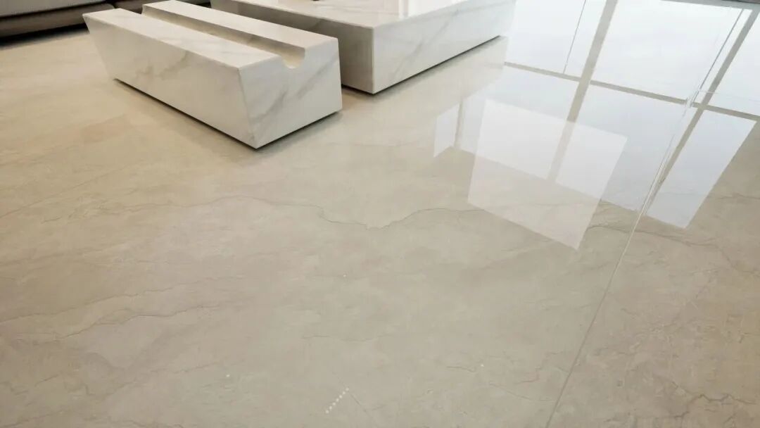 一是纯平面:极致平整,重构审美新质感。传统亮面瓷砖常见的水波纹、R角和辊棒印,是长期困扰建陶行业的技术难题,也是消费者在铺贴后最容易感知到的“品质瑕疵”。玉质石采用分子级材料密实技术,实现了远优于国标规定的≤0.05mm的极致平整度,从根源上消除了这些视觉缺陷,为空间带来了“视觉无界”的沉浸式美学体验感。